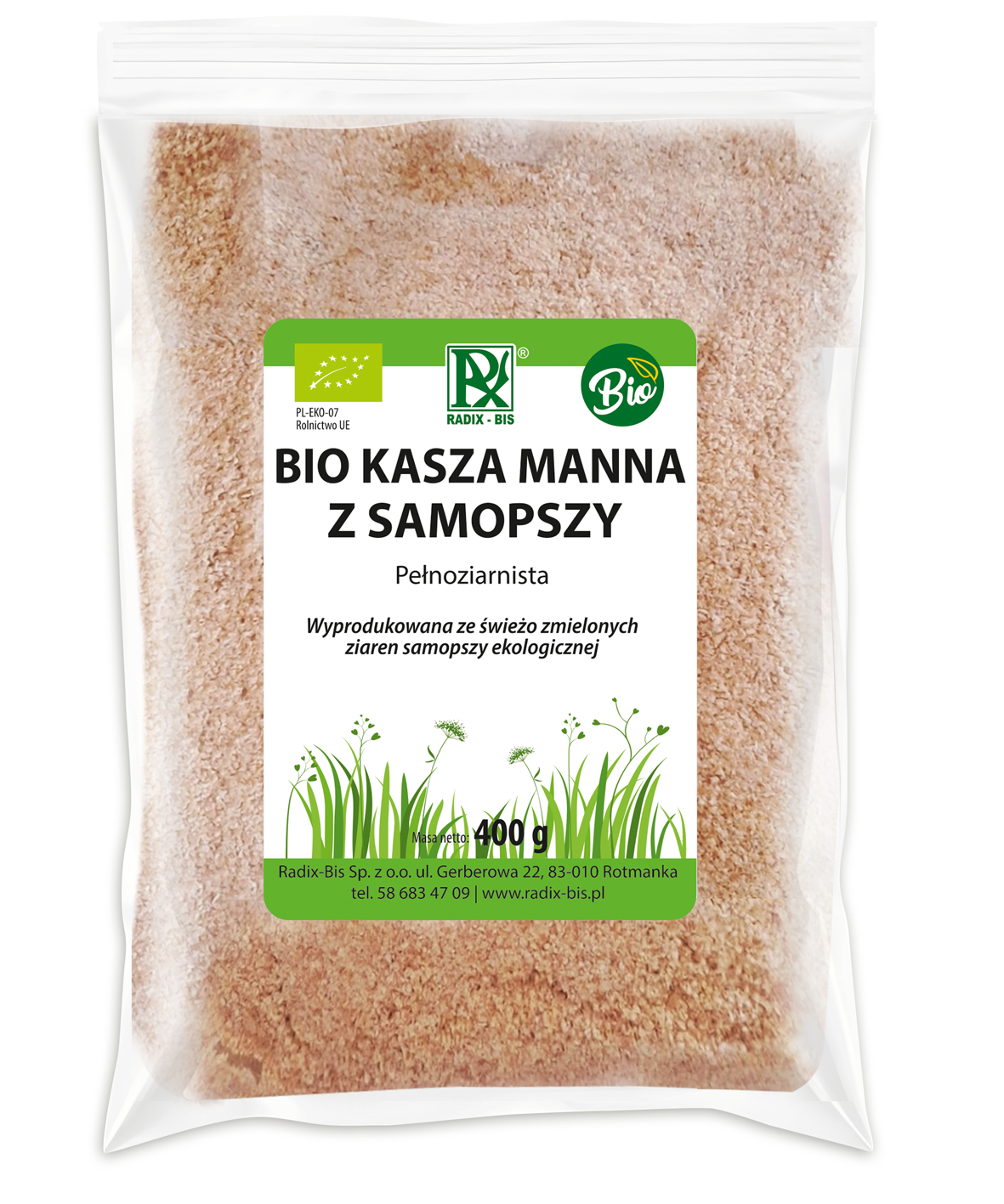 Składniki: Bio kasza pełnoziarnista z pszenicy samopszy